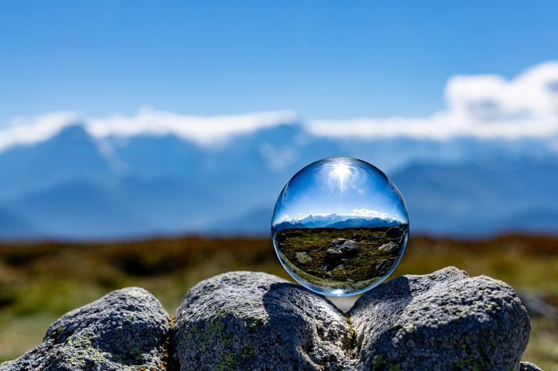 Das Spiel mit der LensballDie Lensball-Fotografie ist ein fesselndes, fast schon magisches Subgenre, das eine vertraute Szenerie in eine faszinierende, auf den Kopf gestellte Welt verwandelt. Sie nutzt eine einfache, glasklare Kugel als sphärische Linse, die die Umgebung auf einzigartige Weise bündelt und abbildet. Der Effekt gleicht dem eines extremen Fisheye-Objektivs, allerdings mit dem dramatischen Zusatz, dass das eingefangene Motiv im Inneren der Kugel stets optisch um 180 Grad gedreht erscheint. Diese optische Anomalie ist der zentrale Reiz: Die Kugel agiert als visueller Brennpunkt, der eine weite Umgebung in einer kleinen, kristallklaren Sphäre konzentriert. Dies verleiht dem Hauptmotiv – sei es eine weite Landschaft, ein markantes Architekturdetail oder sogar ein inszeniertes Porträt – eine surreale, fast schon hypnotische Klarheit. Während der Hintergrund ausserhalb der Kugel weich und verschwommen in die Tiefe verschwindet (ein Effekt, der oft durch eine geringe Schärfentiefe bewusst verstärkt wird), zieht die kristallklare Inversion im Ball die gesamte Aufmerksamkeit auf sich.